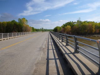 TCT BIkeway 60km from Morden: The right field of footpath is USA.There is no wall. Patrolmen of border watch on a dubious character, |